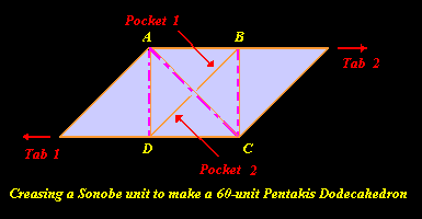 tab 1 of Y into pocket 1 of X to form one vertex of your pentakis dodecahedron. Make 30 such compound
